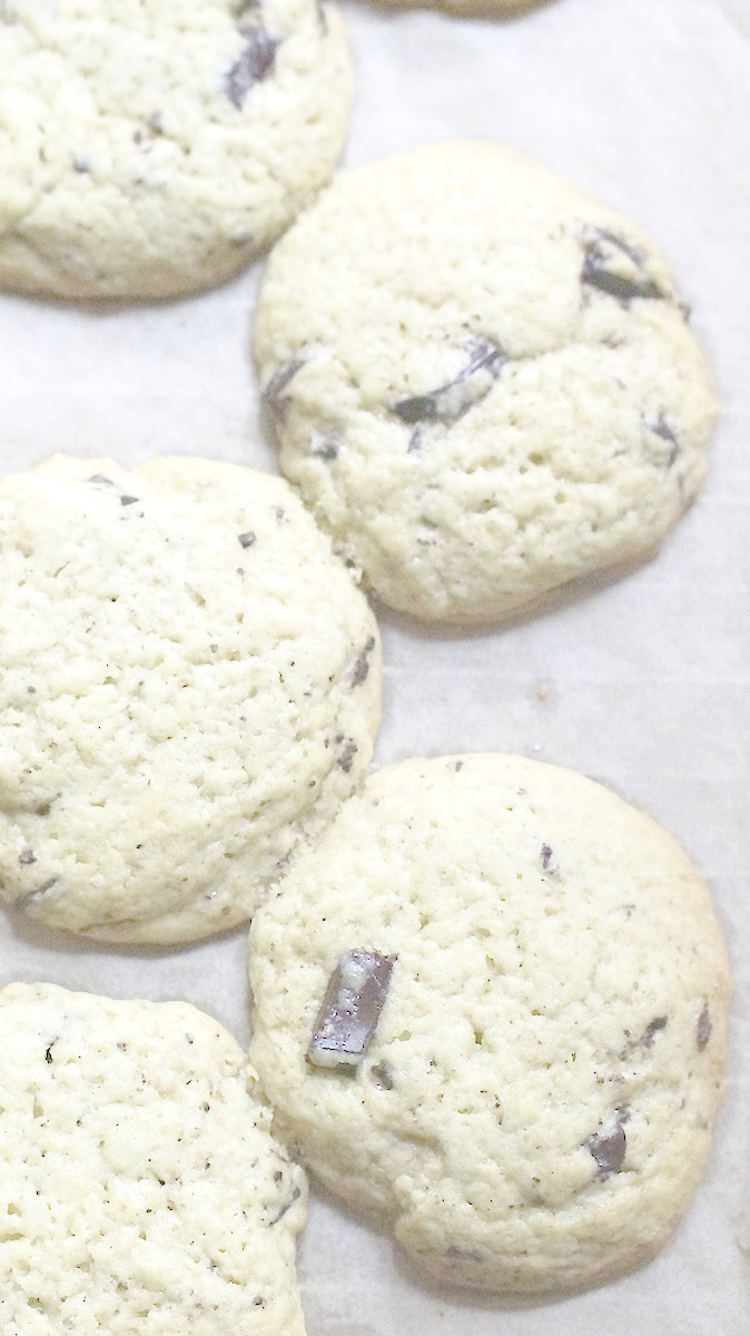 Preheat the oven to 175°C (350°F). Use a cookie scoop to portion out even balls of cookie dough. Place them on a lined baking sheet and press the dough balls flat ust a little, so that they don’t have a dome on top. Bake for 14-18 minutes, just until the edges turn golden brown. Wait until thoroughly cooled before removing them from the parchment paper.